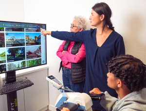À la fin de la formation, deux résidents ont eu la joie de tester le SilverFit Mile en avant-première. Monsieur G., originaire de Bretagne, a pédalé virtuellement dans le Morbihan et les îles Glénan, partageant ensuite l’histoire du château de Josselin. Madame V., quant à elle, a choisi une promenade virtuelle dans le sud de la France, profitant d’une séance de lèche-vitrine en Provence, région qu’elle affectionne particulièrement.